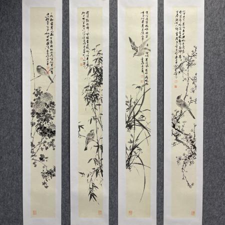 郑晓京写意花鸟画《梅兰竹菊》四条屏
